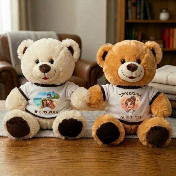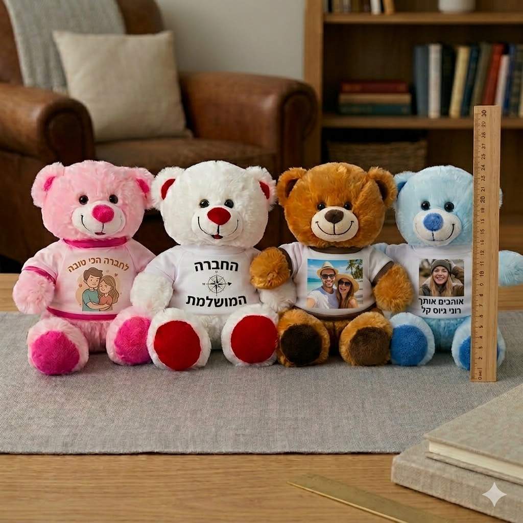 הדובי שלנו הוא הלהיט בקטגוריית מתנות לחיילים וחיילות, הפתעה מושלמת כמתנה לעובדים מצטיינים, או מזכרת מרגשת לכל אירוע משפחתי. ב-SpeedPic אנחנו לא עושים "העתק-הדבק". כל לקוח מקבל עיצוב מותאם אישית וייחודי, כי למי שאת אוהבת מגיע משהו שיוצר במיוחד עבורו.