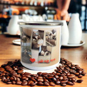 הדפיסו תמונה, משפט או עיצוב מותאם אישית על ספל אמייל לבן איכותי זה, ותיהנו מהדרך הייחודית שלכם להתחיל את היום.