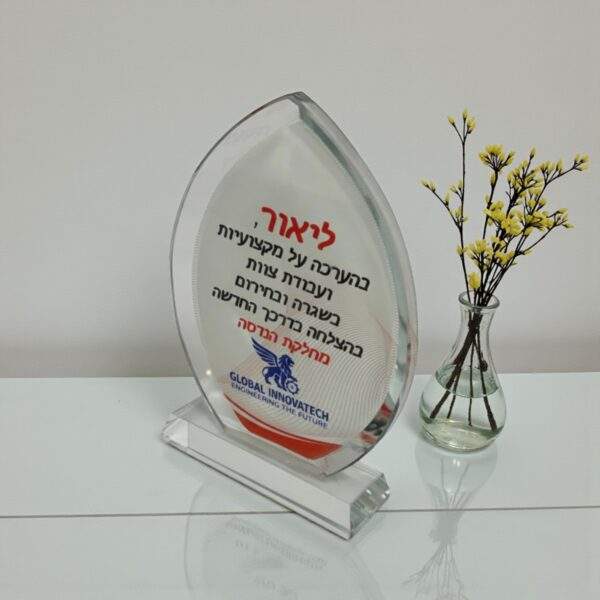 מגן הוקרה זכוכית קריסטל