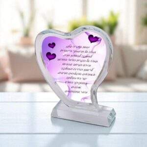 מתנה מהלב, שתיגע ללב! 💖 בלוק קריסטל לב יפהפה בגודל 16X18 ס"מ, מושלם להנצחת רגעים מיוחדים. 🖼️ איסוף עצמי: התקשרו ונוציא לכם לאוטו. 🚗 משלוח: תוך 3 ימי עסקים. 🚚