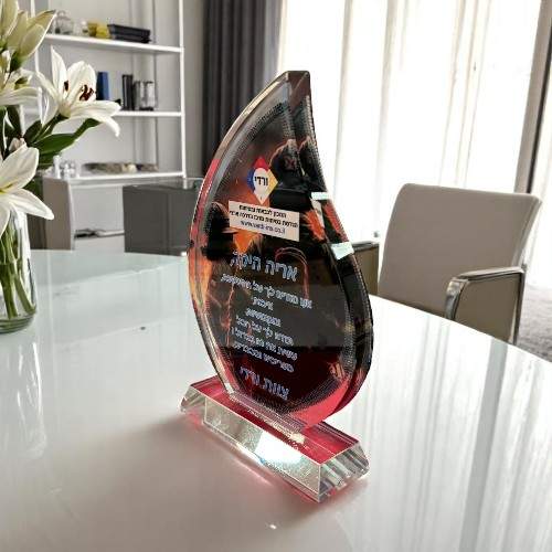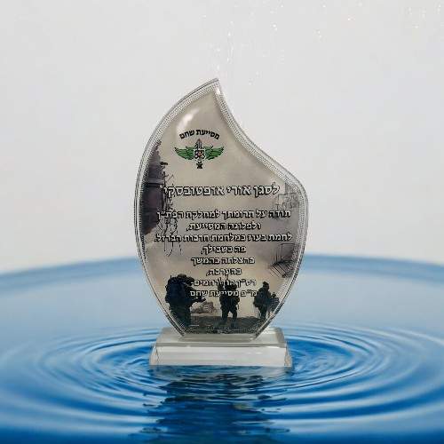 מגן הוקרה יוקרתי מזכוכית קריסטל, מעוצב בקפידה ומודפס בטכנולוגיה מתקדמת, להעצמת המסר