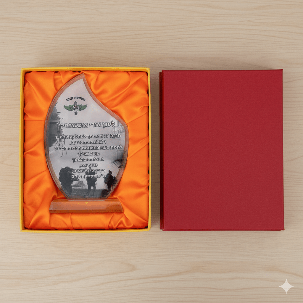 🏆 מגן הוקרה מזכוכית קריסטל - הדרך המושלמת להביע הערכה! ✨ העניקו מתנה מרגשת וייחודית! מגן הוקרה מעוצב מזכוכית קריסטל איכותית עם הדפסה מתקדמת 💎. שלחו כיתוב ולוגו - קבלו סקיצה לאישור 🎨. מושלם כמתנה לעובדים, מנהלים, אנשי צבא ועוד 🎁. משלוח מהיר תוך 3 ימי עסקים 🚀 או איסוף עצמי נוח מהאוטו בתיאום: 050-2877977 🚗. מגיע באריזת מתנה מהודרת!