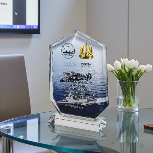 מגן הוקרה יוקרתי מזכוכית קריסטל, מעוצב בקפידה ומודפס בטכנולוגיה מתקדמת, להעצמת המסר