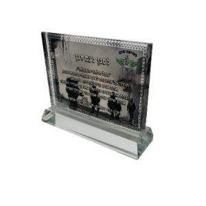 מגן הוקרה זכוכית קריסטל עם מעמד