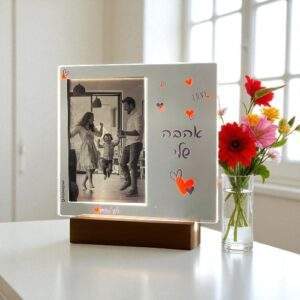 – הדרך המושלמת להאיר את אהבתכם הגדולה ביותר,עם טאץ' אישי שאין לאף אחד אחר. זו לא סתם מסגרת, זו חוויה של אור, אהבה ורגש שתמלא כל פינה בבית!כשמחפשים להביע אהבה, מילים לפעמים לא מספיקות. המסגרת הזו, עם חריטת