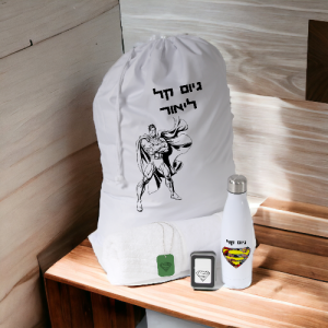 סט מתנה לחייל/ת שק כביסה, בקבוק תרמי, דסקית, מצית ומגבת 130X70