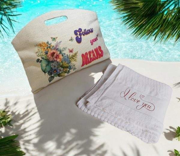 הסט הזה מגיע עם טוויסט מיוחד: הדפסה אישית על התיק והמגבת! 🎨 הוסיפו תמונה אהובה, הקדשה מרגשת, עיצוב ייחודי או לוגו של העסק שלכם ותיהנו מסט חוף שכולו סטייל ואישיות.
