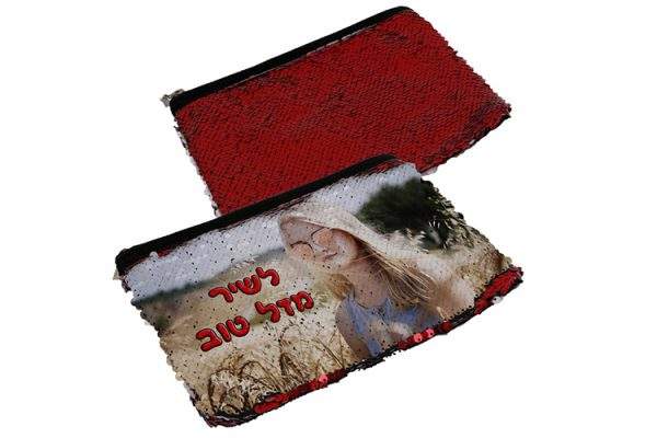 דפסה על תיק איפור פייטים קסום - המתנה המושלמת לכל גיל ולכל אירוע! | להדפסה מ-2 צידי התיק יש לבחור באפשרות הדפסה | קסם של נגיעה: עם כל נגיעה, הפייטים משנים את צבעם וחושפים את התמונה או הכיתוב שבחרתם להדפיס! | תיק האיפור הזה הוא לא סתם תיק, הוא חוויה אישית ומרגשת שתלווה אתכן לכל מקום.